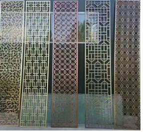 (1)激光镂空切割屏风:通过大型激光切割机切割镂空得出一定图案,再经过表面处理后,真空电镀着色。